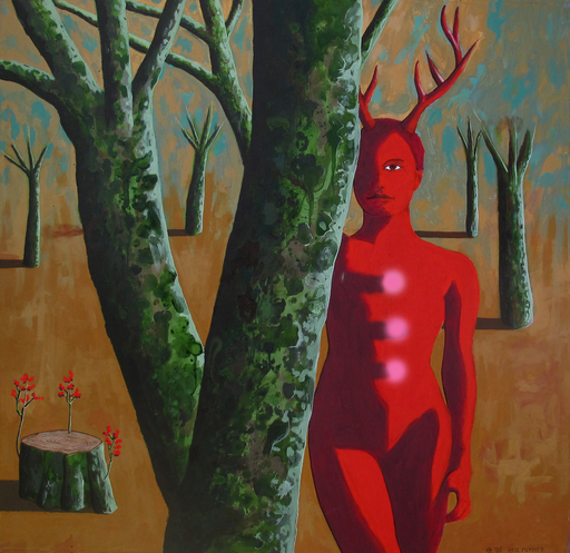 Erik Radenmaker (1955) was educated at the Vrije Academie Psychopolis in The Hague and the Willem de Kooning Academy in Rotterdam. In his paintings you often encounter women, sometimes provocative, sometimes funny, sometimes bitchy, threatening, sometimes in a (loving or tragicomic) relationship with a man, or displaying masculine traits themselves, sometimes in a semi-mythical environment - always colorful. He paints with acrylic and oil paint on canvas surfaces varying from 1/2 to 1 m2.